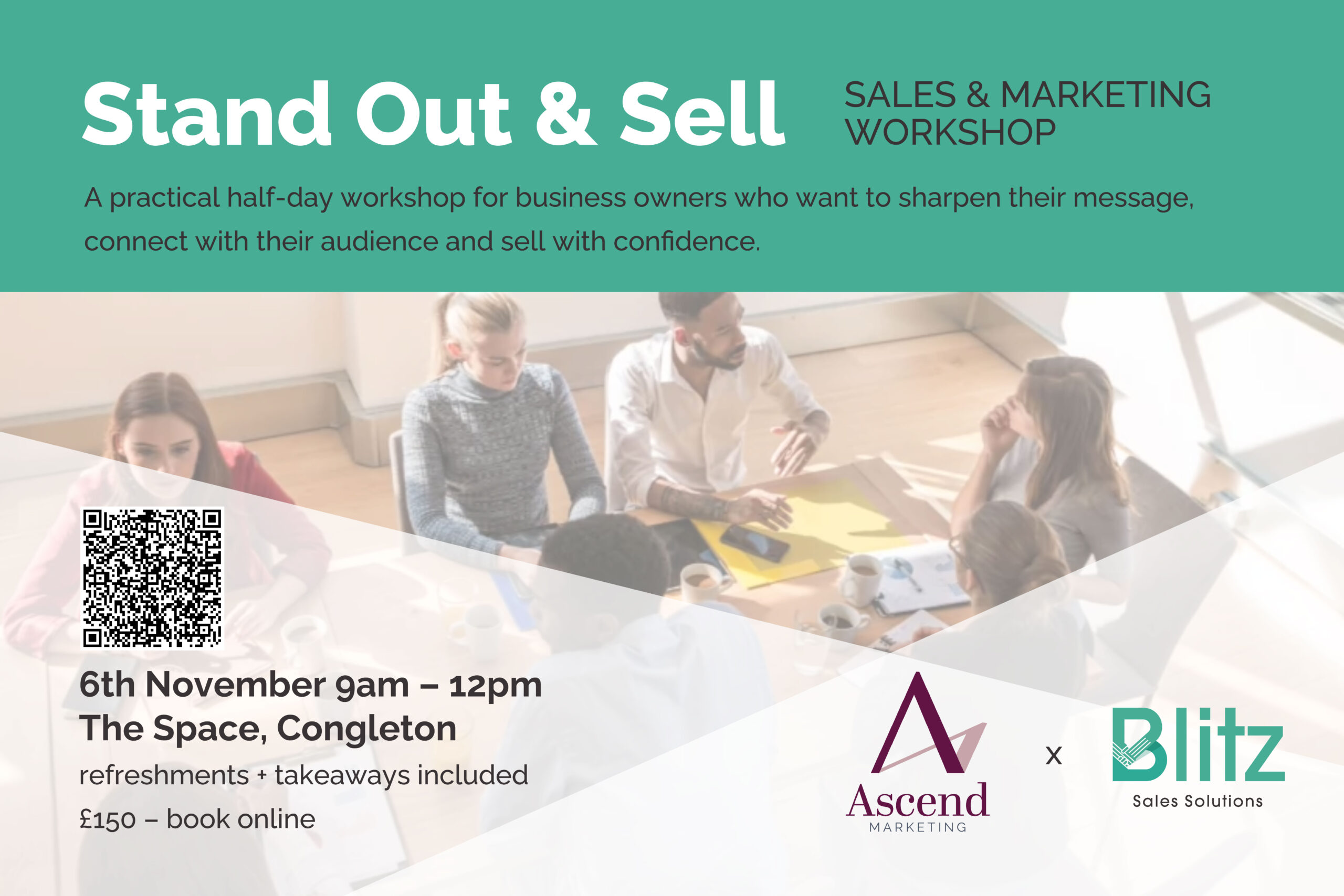 Join Alastair Ruston (Blitz Sales Solutions) and Anya Dayson (Ascend Marketing), at The Space in Congleton for a dynamic, in-person workshop that will supercharge your sales and marketing skills.